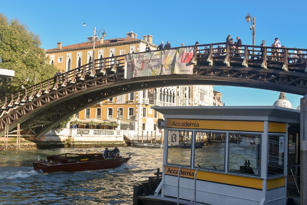 Continue on your Venice walking route towards the University, avoiding the sweet treats of Tonolo if you have just had lunch, and over the bridge by the fire station – make sure that you look back from the bridge to see if you can spot any red fire boats under the arches of this water-based station.