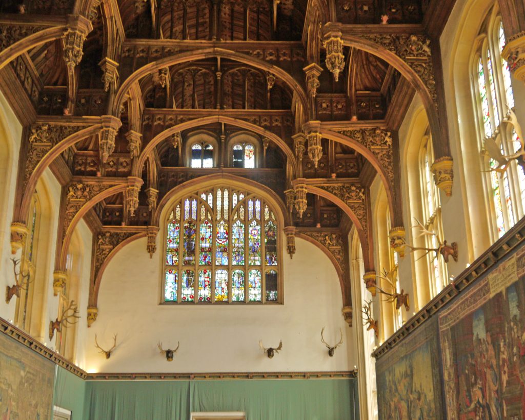 The Great Hall was designed to impress those who visited and to demonstrate Henry VIII’s power and ‘magnificence’. As well as huge tapestries and numerous stags’ heads, it has a stunning hammerbeam timber roof which has carvings relating to Anne Boleyn (Henry VIII’s second wife) with an H and A entwined on the wooden screen.