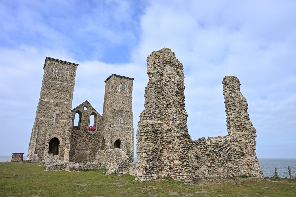 The monastic church was later adapted as Reculver’s parish church until 1805. At the time of the Roman fort, the sea was almost a mile away. However, over time, the sea crept closer, until by the early 19th century it was so close that the villagers were forced to move inland, and a decision taken to demolish the church.