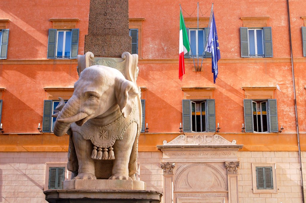 Find the obelisk at the centre of Piazza della Minerva, featuring a carved elephant by Bernini.