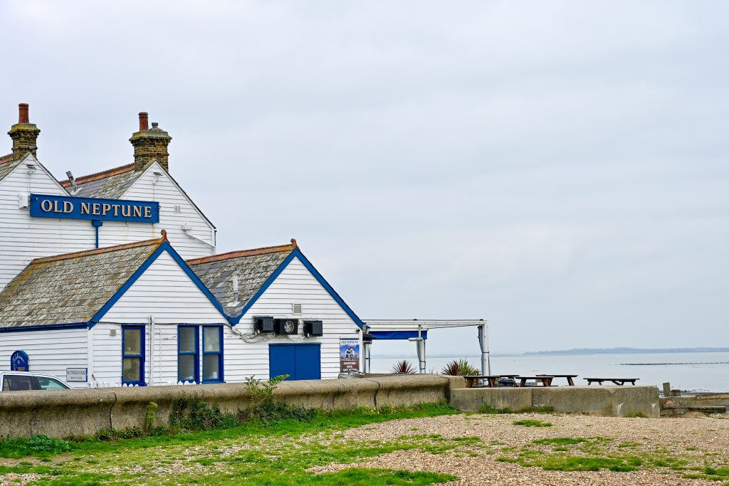 Shortly after the blue plaque, you’ll reach The Old Nelson Pub (or ‘Neppy’), a large pub directly on the beach with a large seating area outside, which is a good lunch option if you have a dog with you. When you visit Whitstable then you should really try the oysters – we enjoyed the first oysters of our trip at the Neppy, served with simple slices of lemon, and they were delicious.