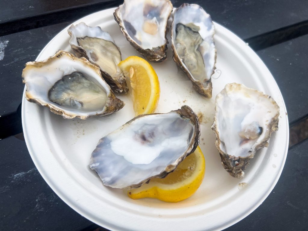 Today, along with harvesting the Native oysters, the company grows 10.5 million Pacific Rock oysters in mesh bags on trestles in the intertidal zone each year. The Rock oysters are grey and available all year round, in contrast to the Royal native versions which are brown and traditionally only harvested ‘when there is an R in the month’.